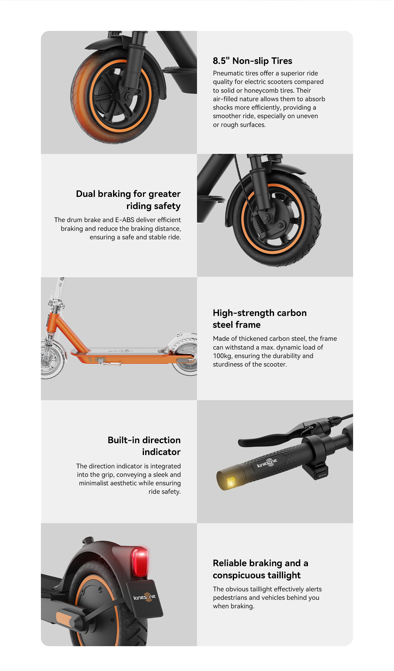 - Pneus: 8.5” pneumáticos