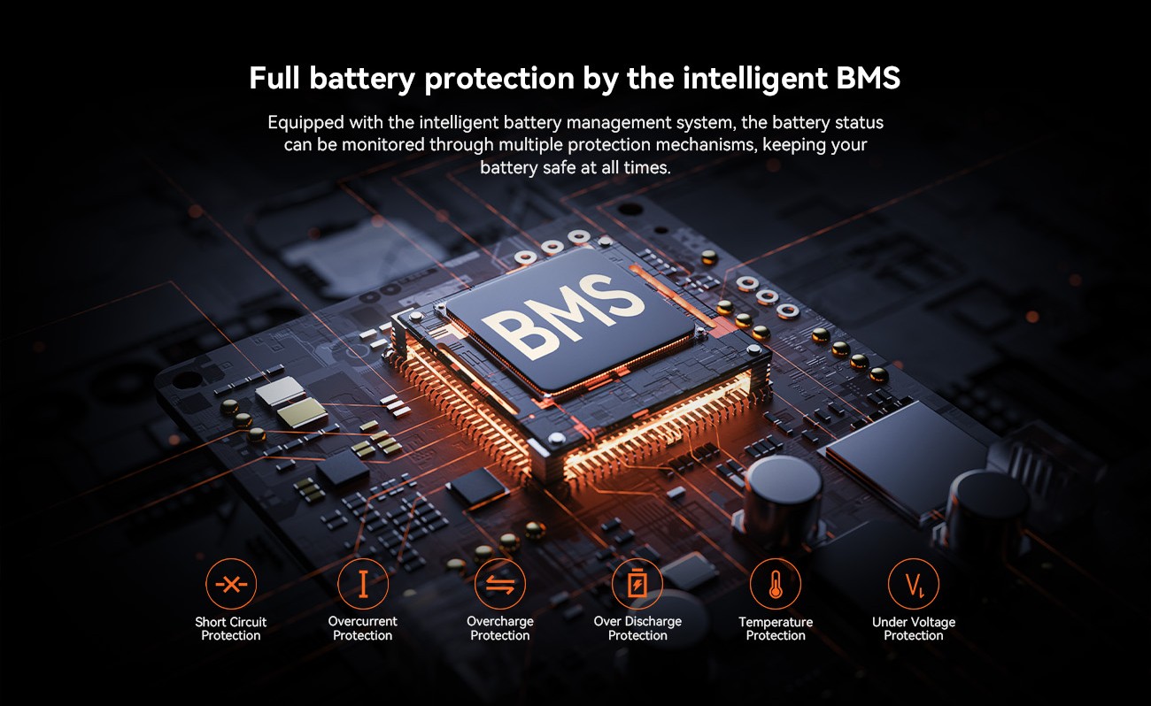- Sistema de bateria: BMS inteligente com múltiplas proteções