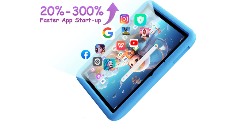 Tablet infantil completo com ecrã IPS de 10,1″, Android 14 (DokeOS 4.0), 128GB de armazenamento, RAM expansível e som estéreo com altifalantes duplos. Inclui capa protetora EVA, modo infantil, controlo parental e Wi-Fi dual-band para navegação segura e fluida.