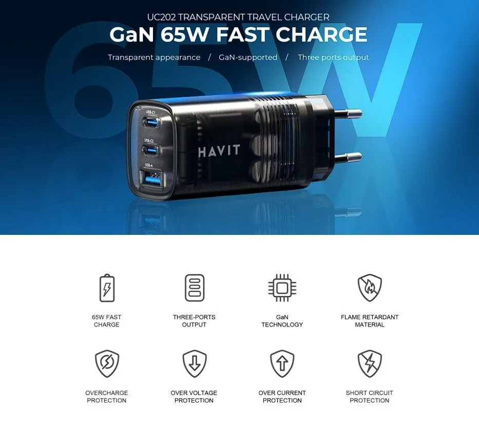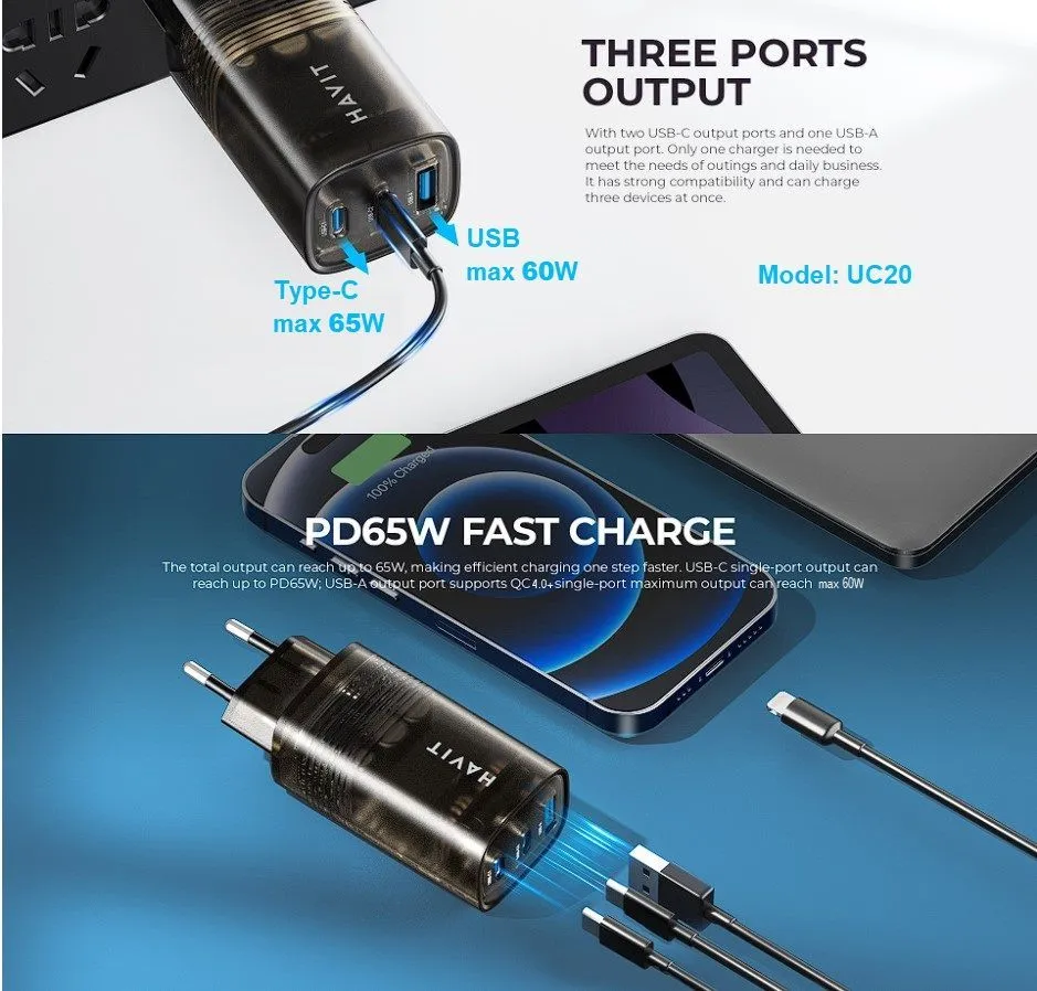 Apresentamos o HAVIT UC20, um adaptador de parede universal com tecnologia GaN de última geração — ideal para quem busca uma solução rápida, segura e compacta para carregar seus dispositivos, desde smartphones até notebooks modernos com entrada USB-C, incluindo MacBooks