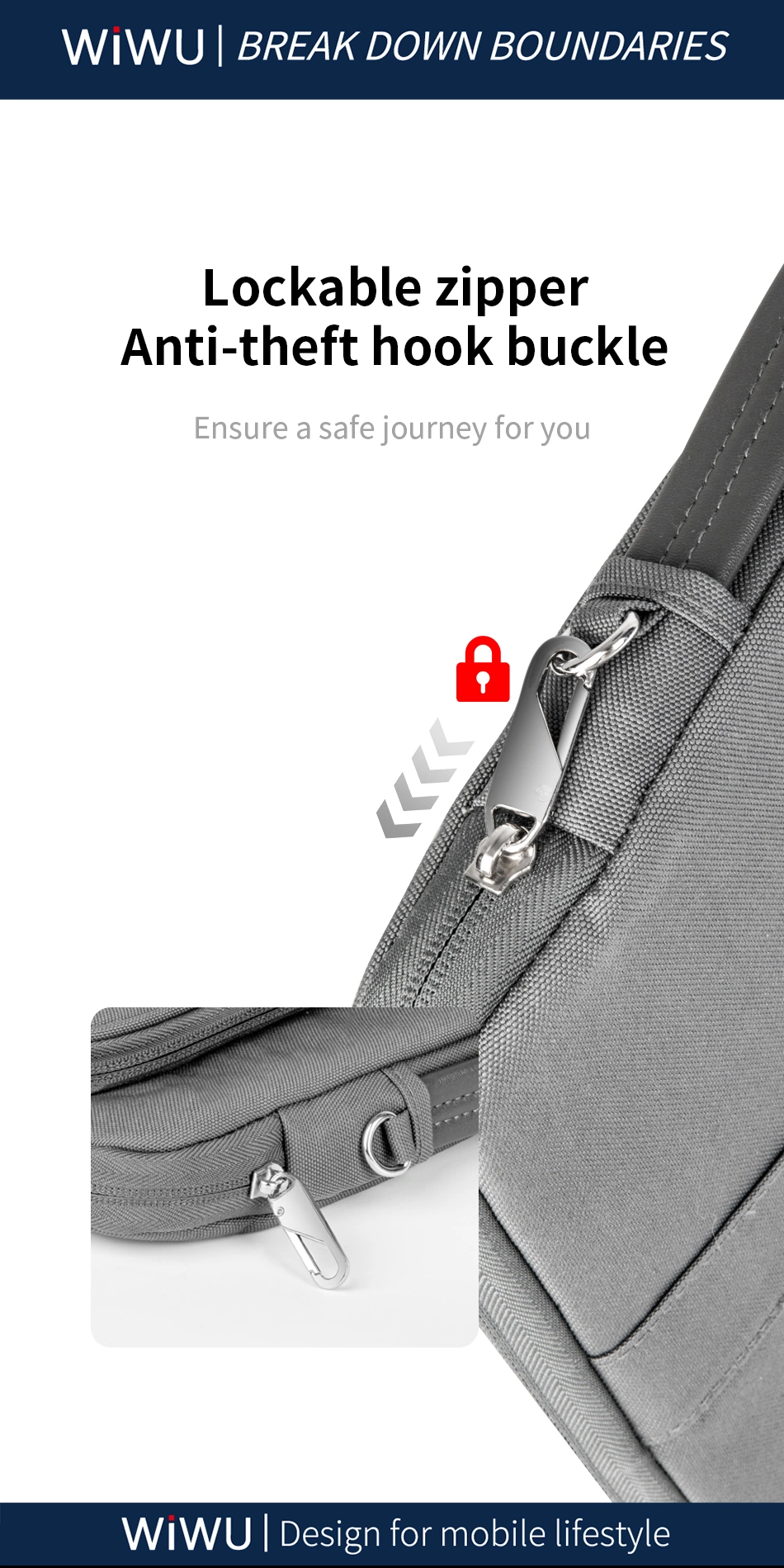 O material externo é impermeável, protegendo o laptop contra respingos de água. O forro interno de microfibra e pelúcia sintética evita arranhões e danos à superfície do dispositivo. A zíper YKK é resistente e suave, garantindo fechamento seguro e durável. Possui tira patenteada interna antiqueda, oferecendo proteção extra contra impactos acidentais.