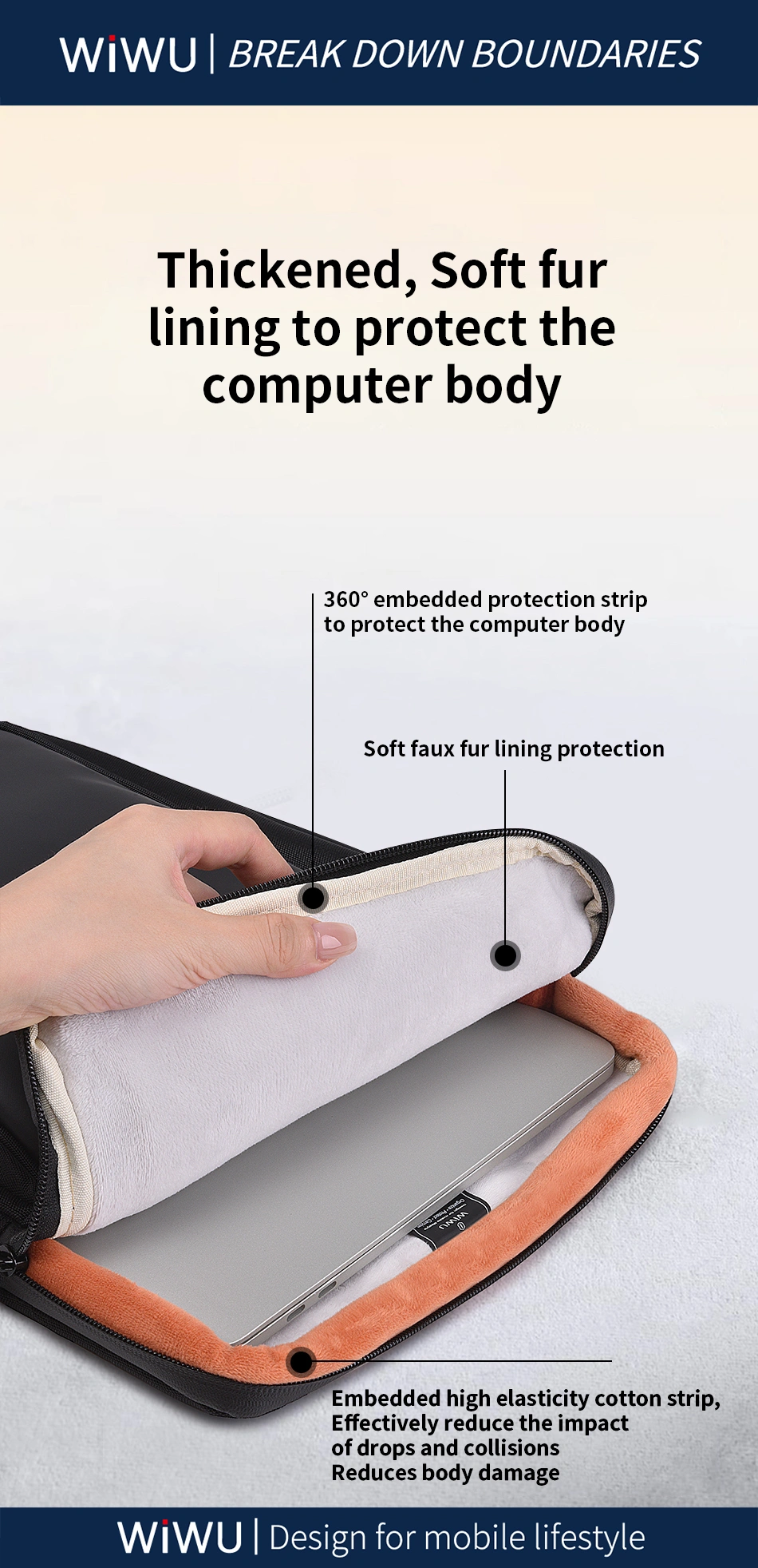 A WiWU Cozy Classic é uma capa protetora para laptops, projetada para combinar segurança, durabilidade e estilo. Fabricada com materiais de alta qualidade, oferece proteção contra impactos, arranhões e líquidos, mantendo seu dispositivo seguro durante transporte ou armazenamento.