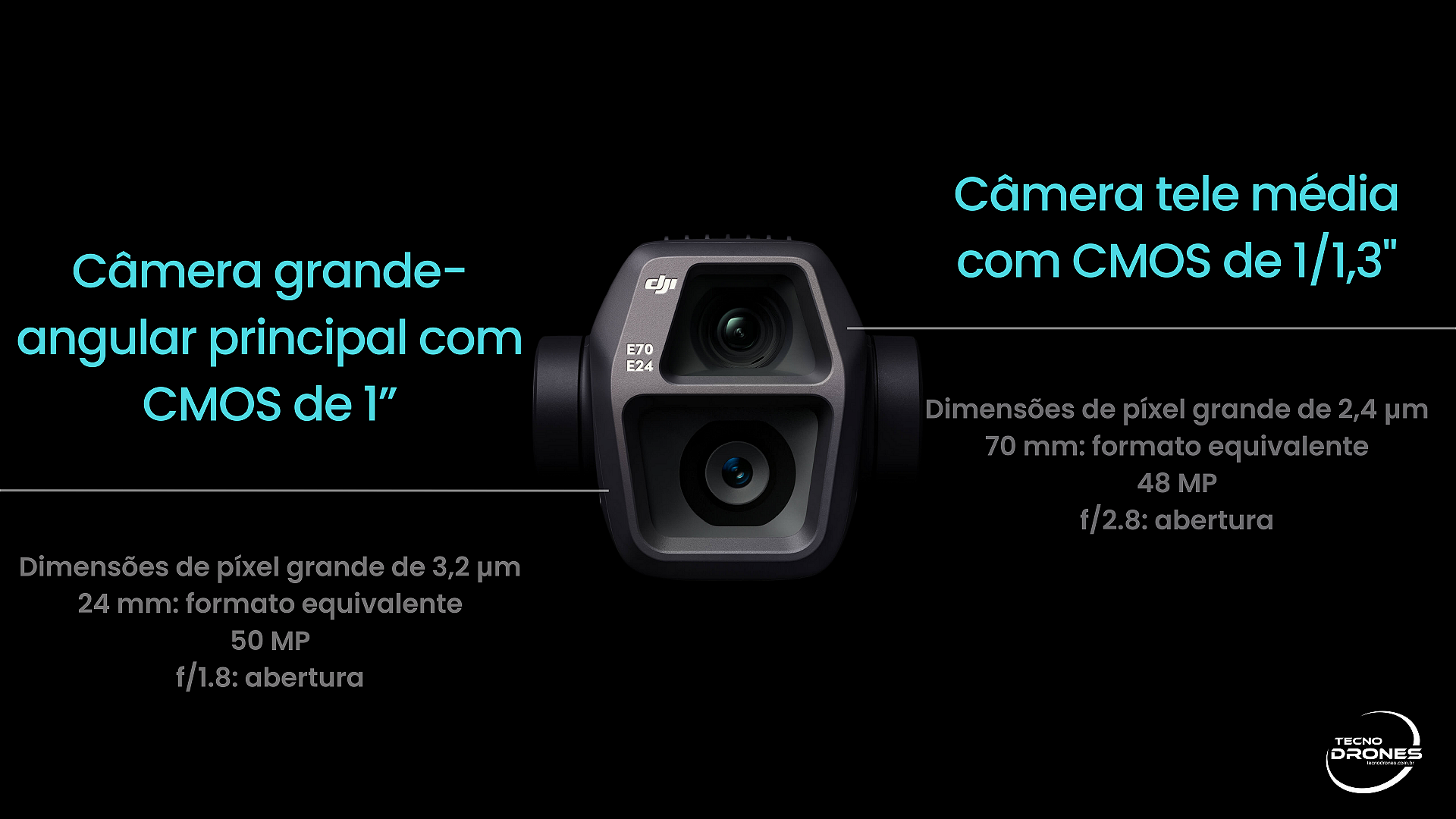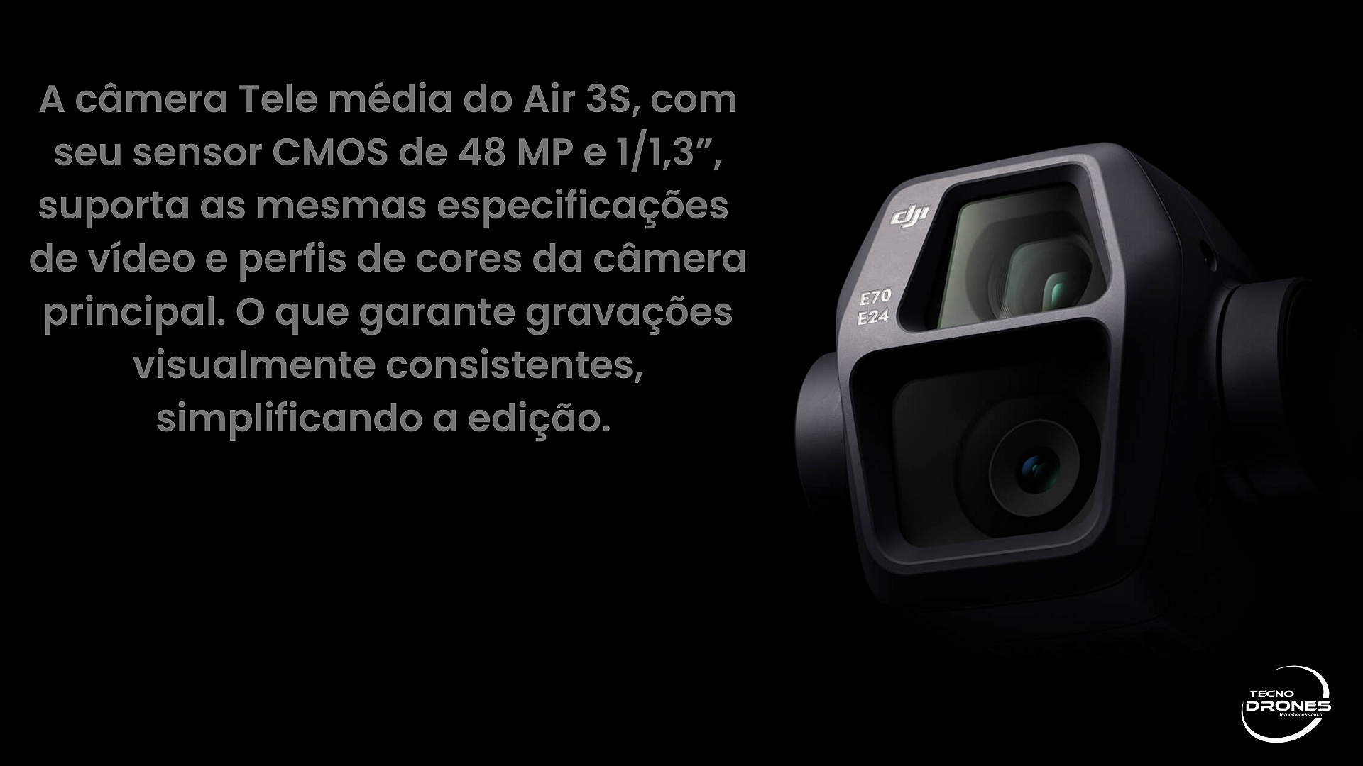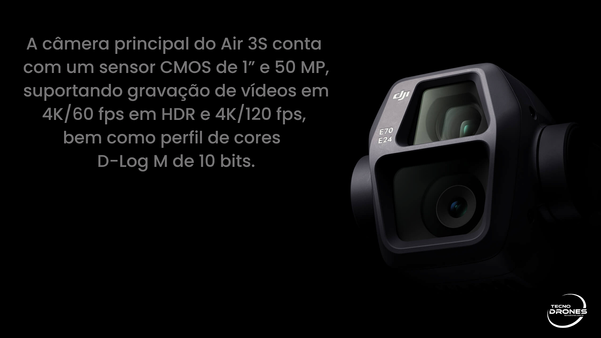 O DJI Air 3S é um drone de viagem com duas câmeras — grande-angular de 1” e Tele média de 70 mm — que captura fotos e vídeos em alta qualidade com até 14 paradas de alcance dinâmico. Possui detecção de obstáculos omnidirecional noturna, Retorno à Base Inteligente e até 45 minutos de voo, tornando-o ideal para explorar paisagens e criar conteúdo profissional com segurança.