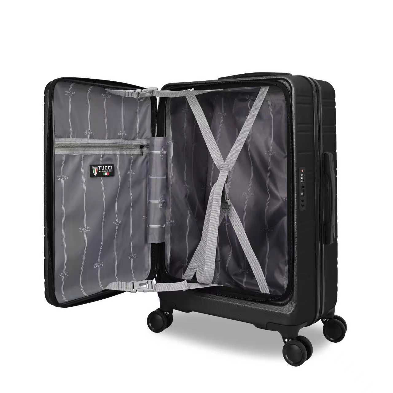 Acesse o compartimento principal de frente, como uma mochila. Praticalidade total no aeroporto, hotel ou estação.