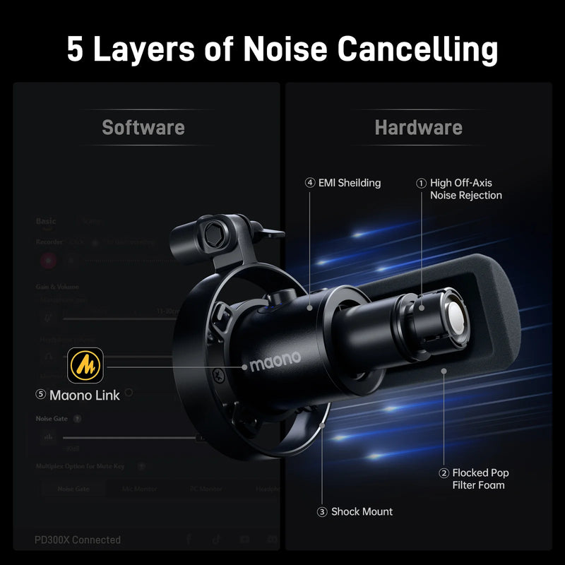 - Ativação rápida de redução de ruído (pressionar e segurar)