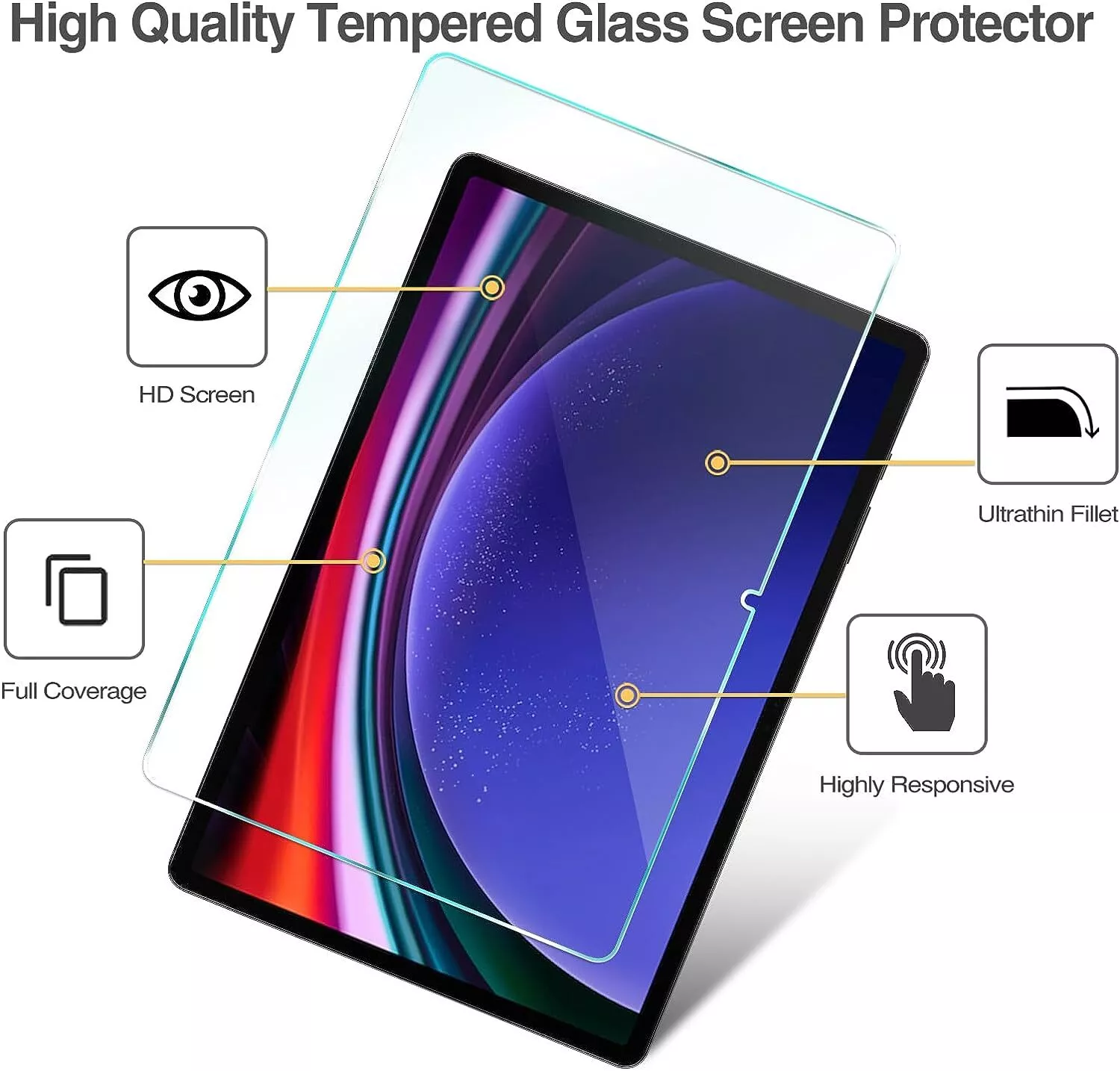 Protetor de ecrã de alta transparência para o Samsung Galaxy Tab S10 Ultra X926 14.6″, disponível em vidro temperado 9H ou película PET, garantindo proteção eficaz contra riscos, marcas de dedos e pequenos impactos, sem comprometer a sensibilidade ao toque nem o uso da S Pen.