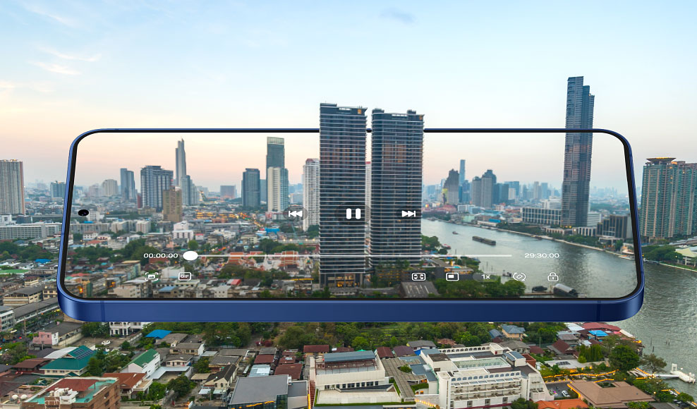 Construção: vidro Gorilla Glass Victus 2 (frente e verso), estrutura em alumínio Armor Aluminum 2