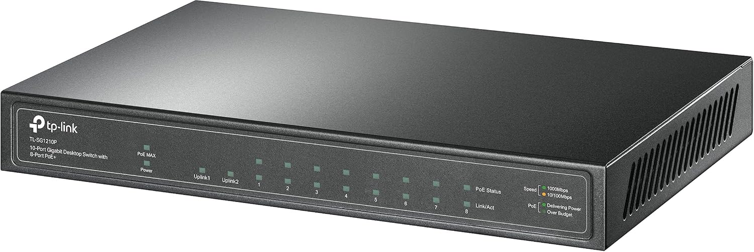 8x RJ45 Gigabit Ethernet PoE+ (30W por porta, 802.3at)