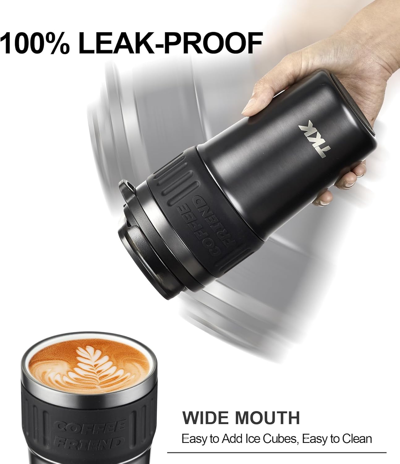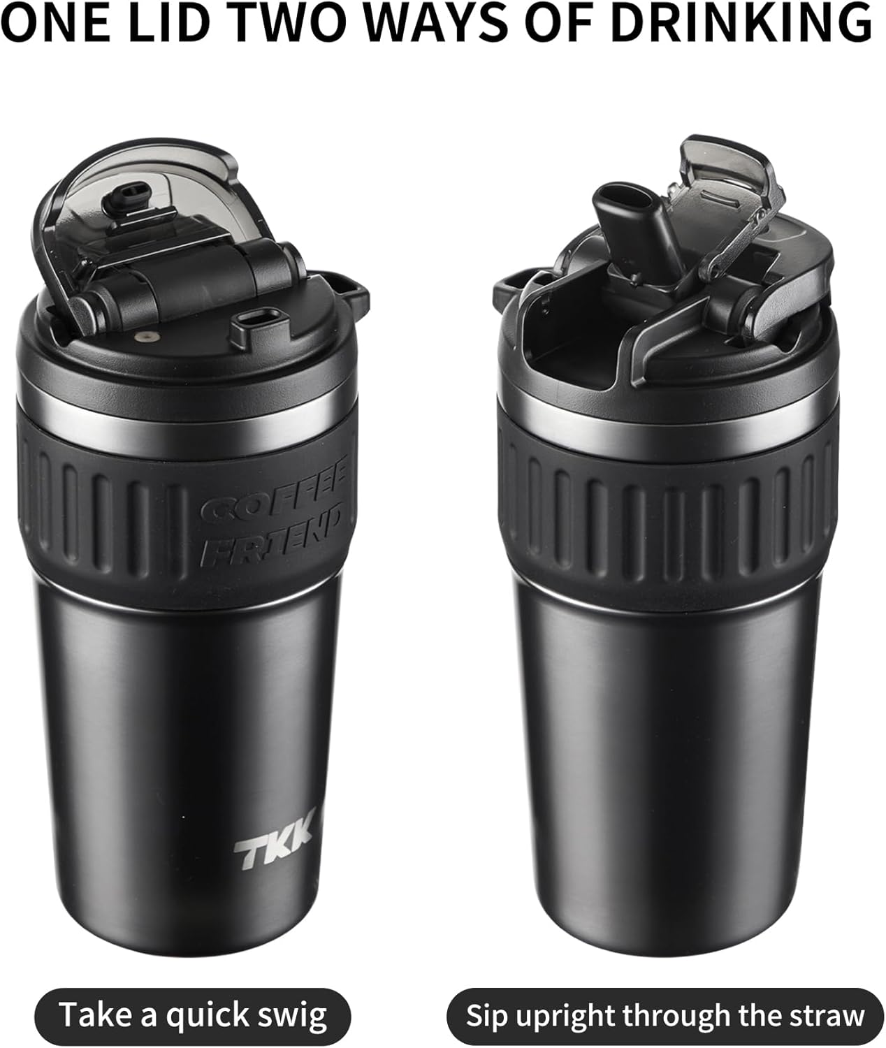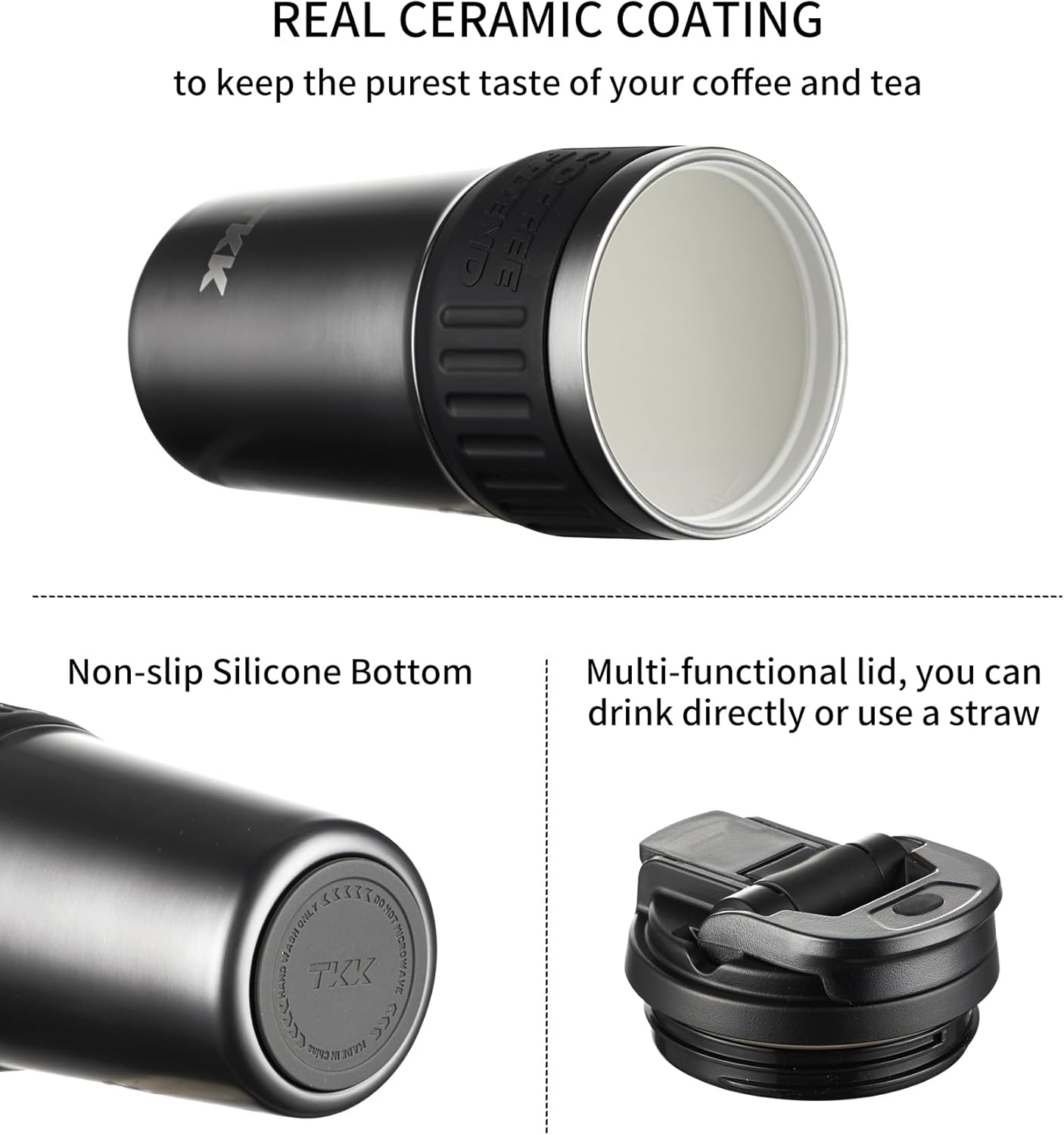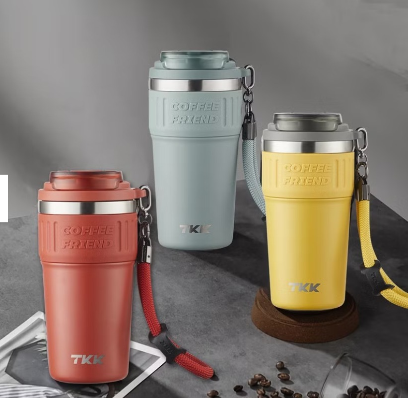 A caneca térmica TKK 630 ml possui dupla parede em aço inoxidável (304L externo / 316L interno) e tampa dual-purpose com pipeta ou beber direto. Mantém bebidas quentes por até 6h e frias por até 12h, é BPA-free, à prova de vazamentos e vem com alça de transporte antiderrapante. Disponível em 6 cores vibrantes, ideal para casa, escritório ou atividades ao ar livre.