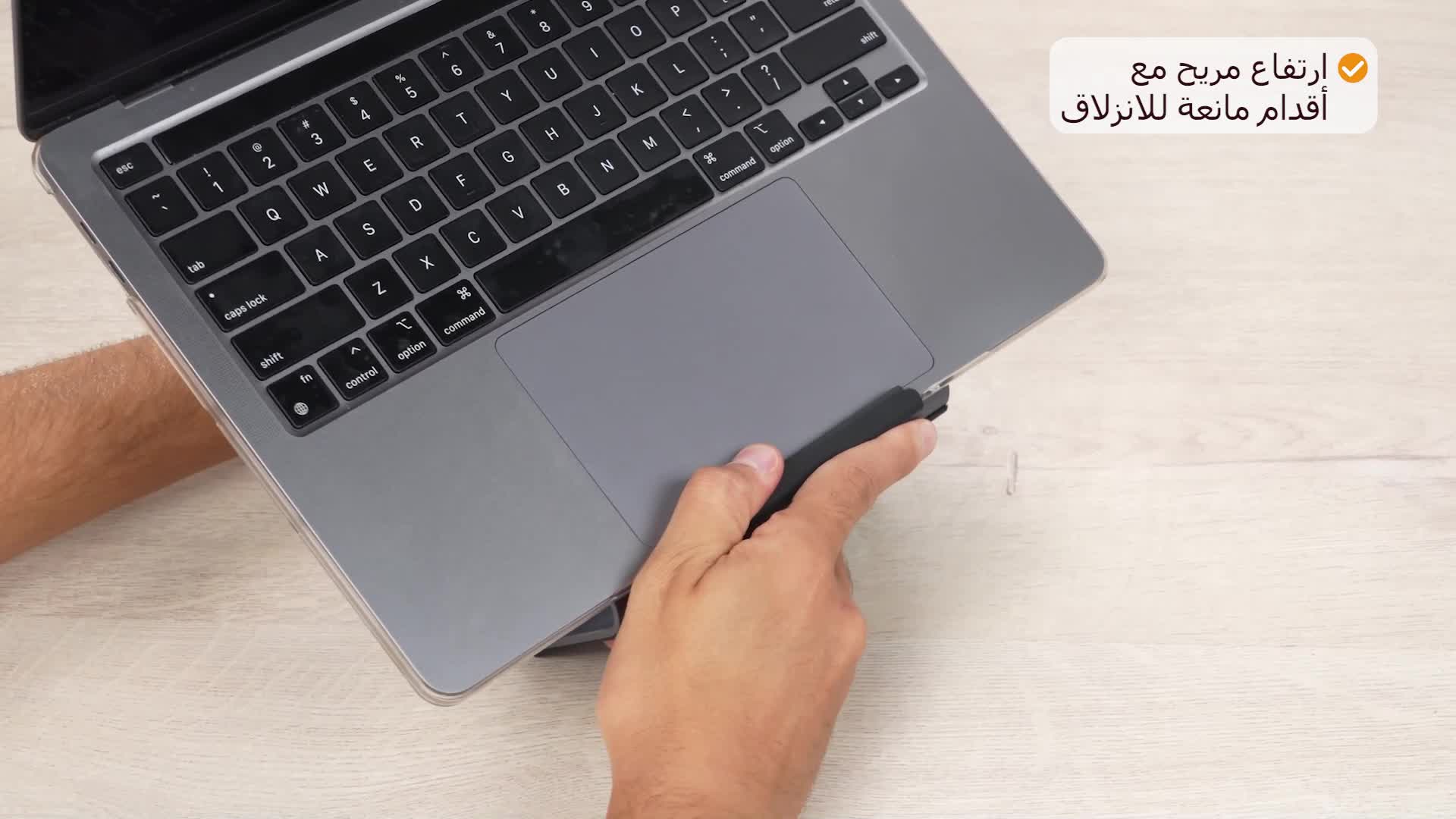 Base sólida com acabamento antiderrapante que mantém o laptop seguro em qualquer ângulo. Estrutura resistente garante estabilidade mesmo com notebooks de grande porte.