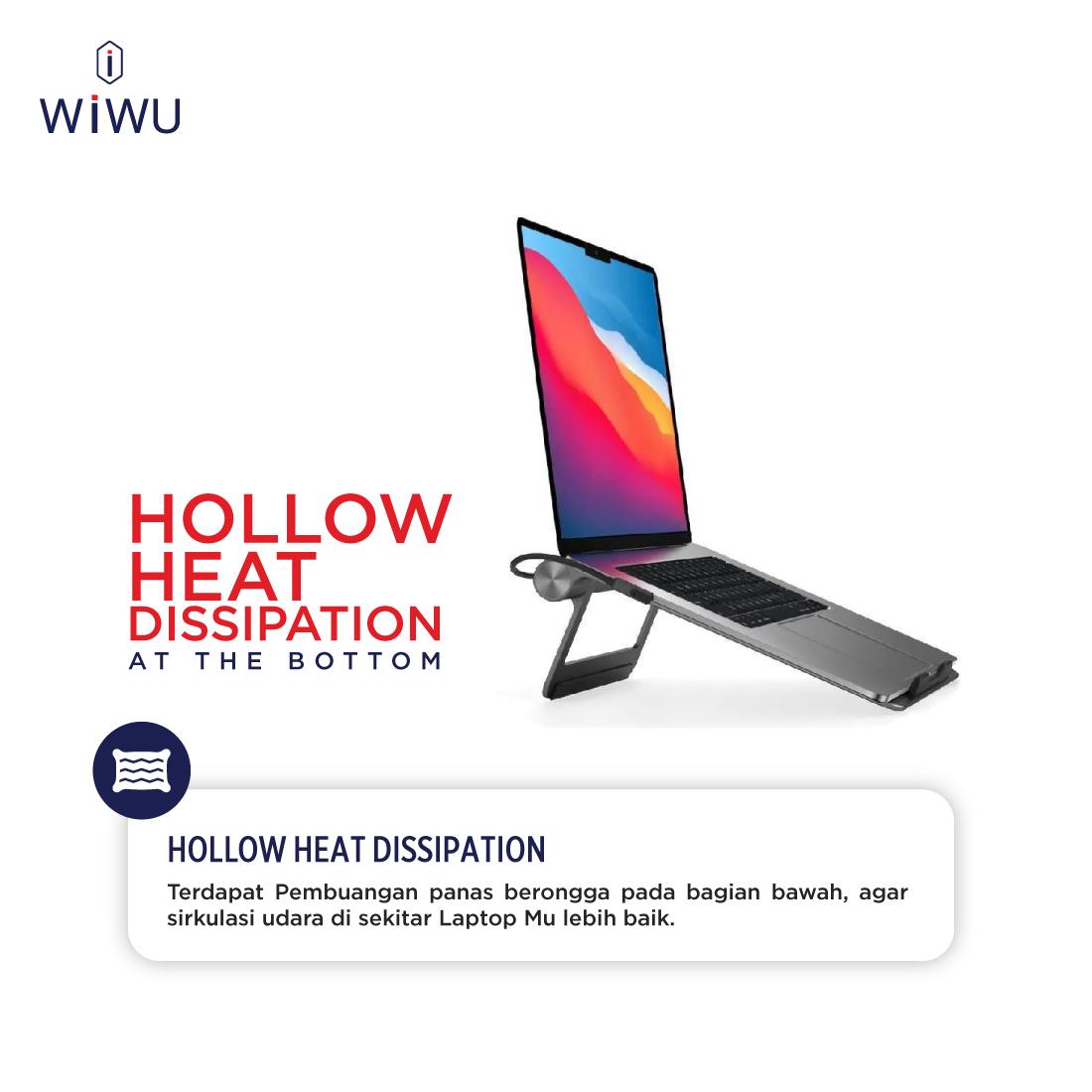 O suporte é feito em alumínio de alta resistência, proporcionando estabilidade e durabilidade. A superfície texturizada aumenta a resistência a arranhões. O design dobrável permite armazenamento compacto e transporte conveniente. Ventilações na base auxiliam na dissipação de calor do laptop durante o uso prolongado.