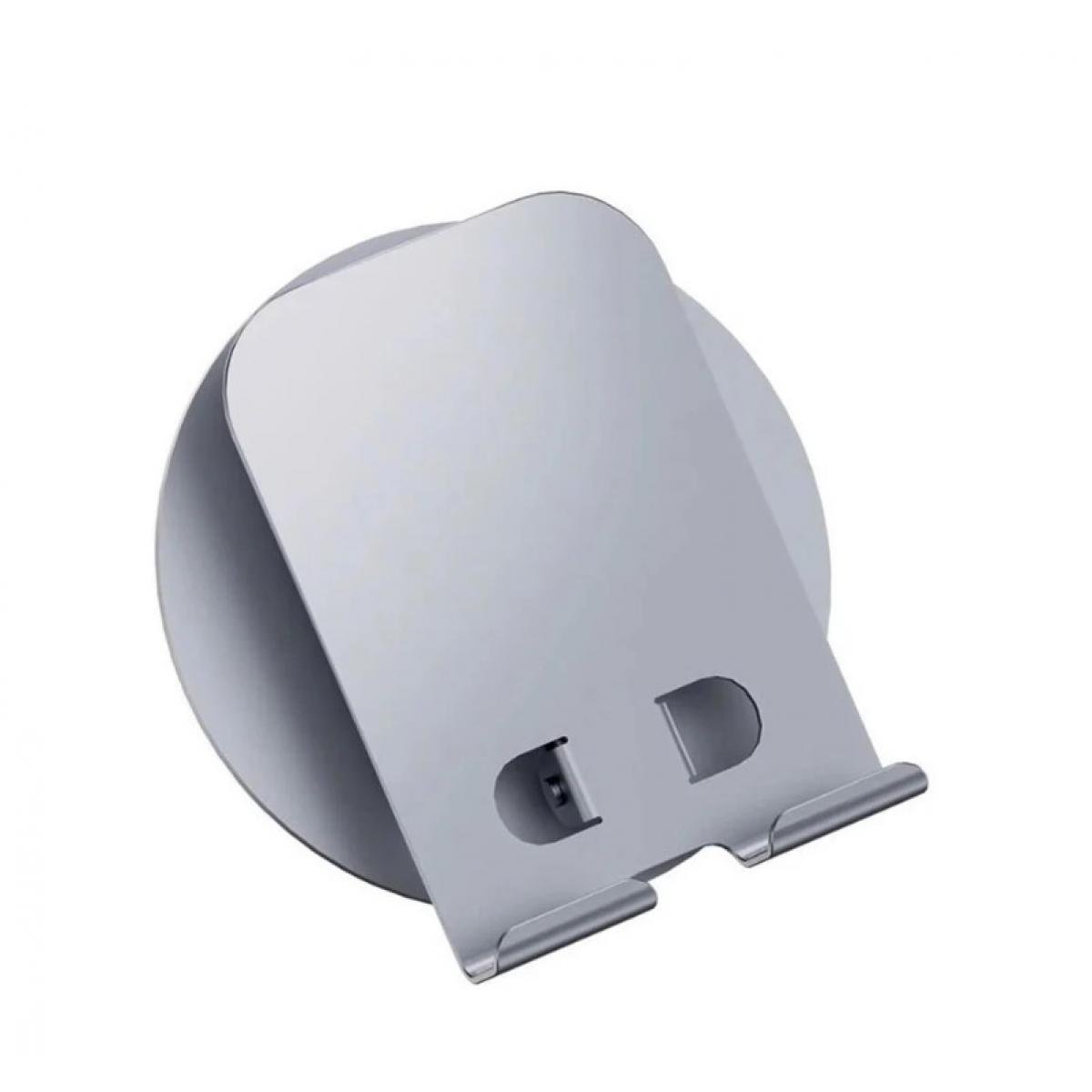 A estrutura é feita em liga de alumínio espessa, garantindo rigidez e resistência a deformações. As áreas de contato com o dispositivo e com a superfície de apoio são revestidas com silicone antiderrapante, prevenindo riscos e deslizamentos. O acabamento metálico escovado confere aparência moderna e profissional.